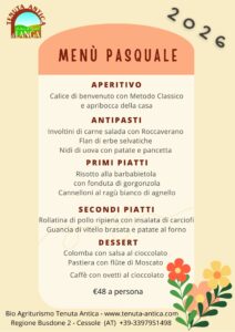 - il pranzo di Pasqua con aperitivo e apribocca, 4 portate, dolce, acqua e caffè compreso (vini e digestivi esclusi) per due persone
